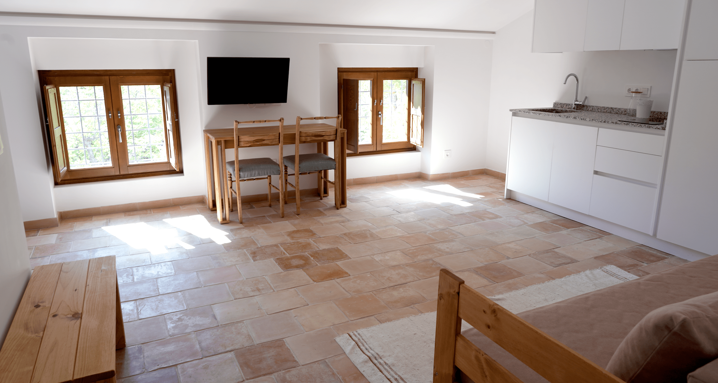 Espacioso estudio ubicado en la segunda planta con vistas al jardín. Dotado de climatización individual por suelo radiante, una cocina completamente equipada y un baño privado, este estudio combina confort y funcionalidad.