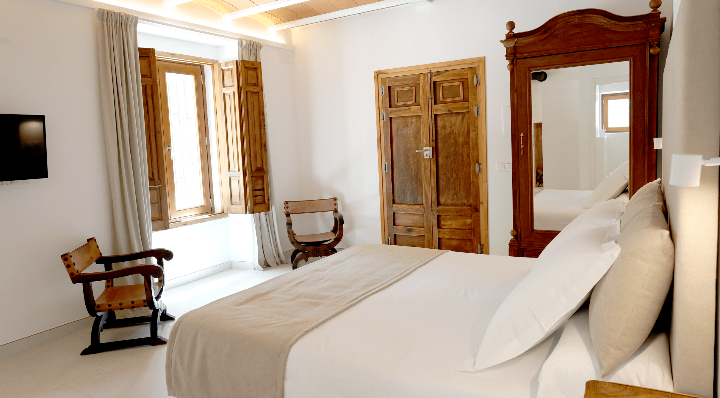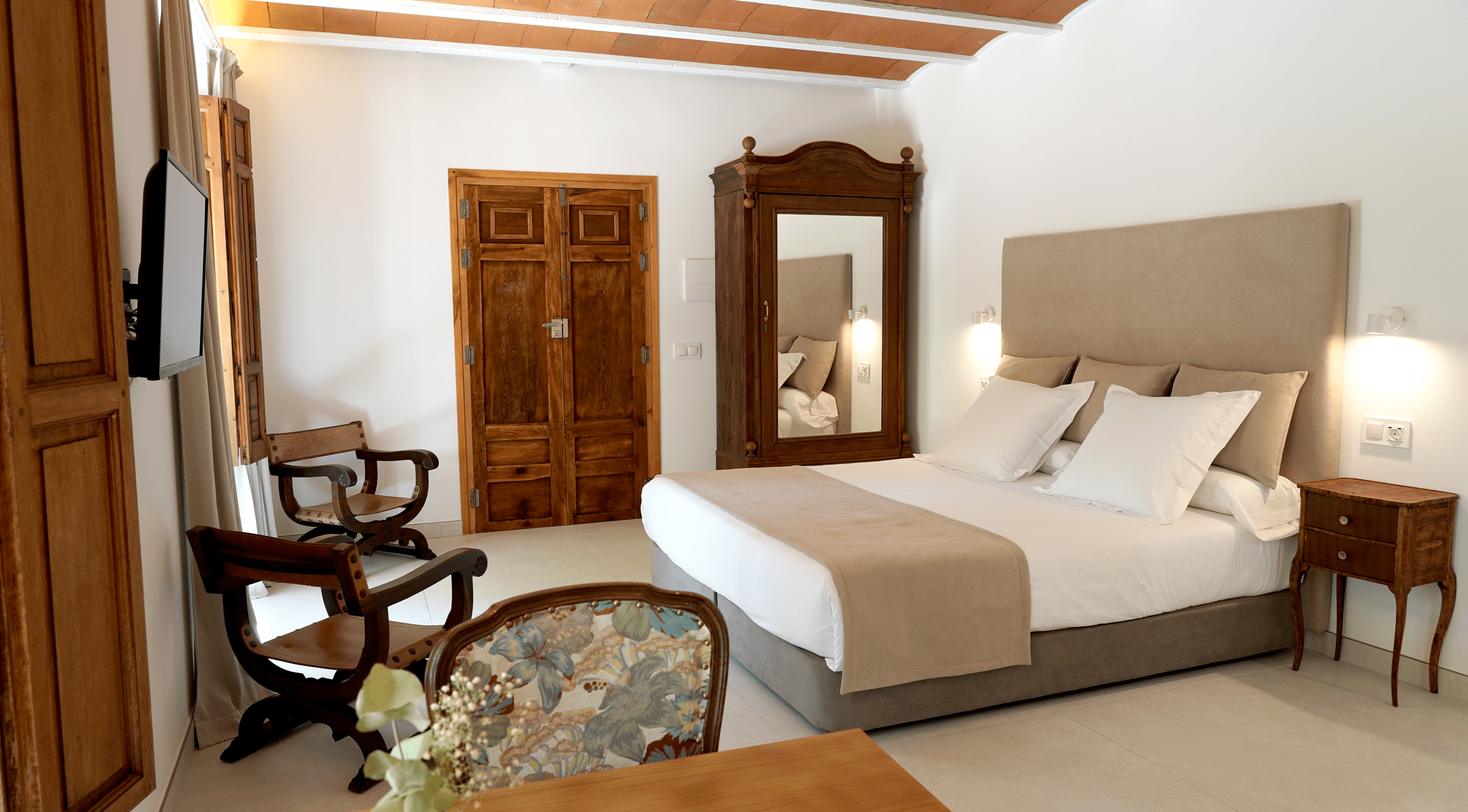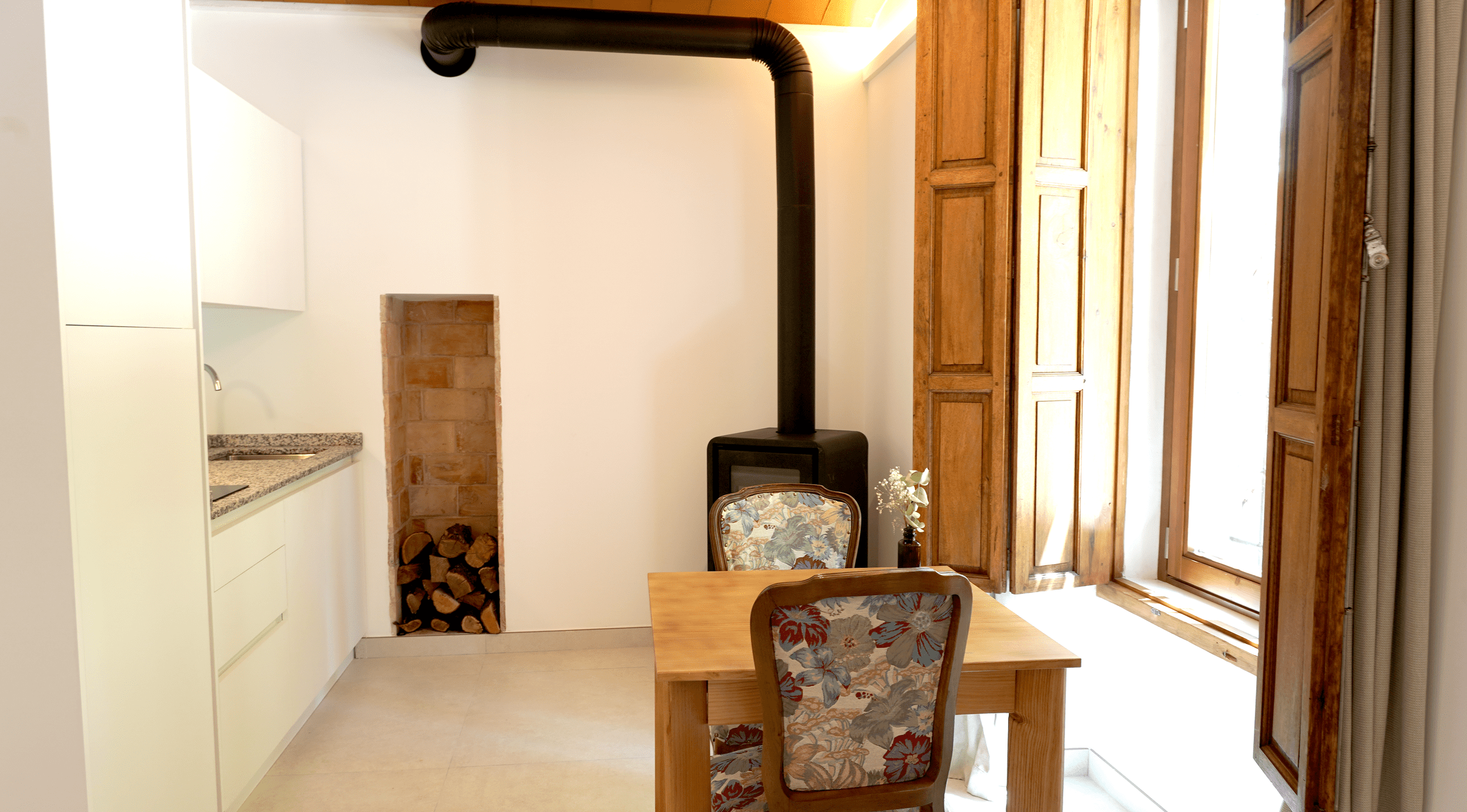 Este encantador estudio se encuentra en la planta baja del Cortijo, ofreciendo grandes ventanales que brindan vistas al jardín.